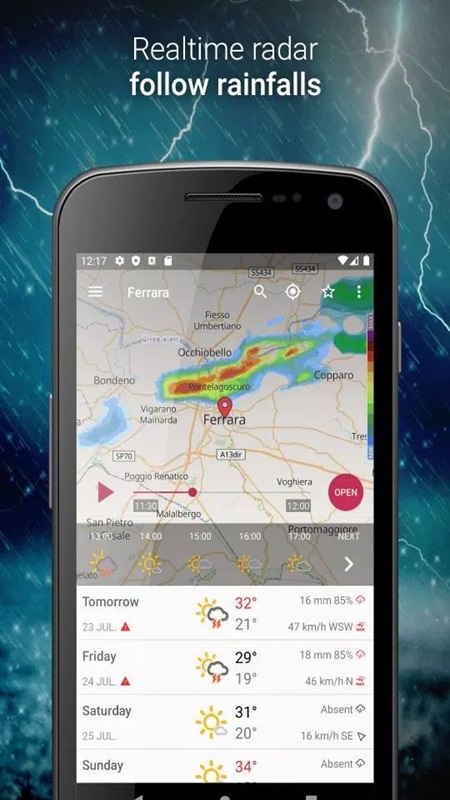 Are you looking for a reliable weather application with continuously updated information, 3B Meteo Unlocked Premium will be an option that you cannot ignore. To get the most accurate weather information, users need to provide the application with their current location. Thanks to accurate radar and satellite technology, you can easily predict the appearance of weather phenomena such as rain, hail, snow, and sunny hot. The application will use information observed from the past and then apply a predictive algorithm to provide future weather data. Thus, users will quickly grasp the intensity and direction of movement of weather phenomena such as storms, thunderstorms and turbulence. In addition, 3B Meteo MOD APK also provides users with the expression and movement of clouds and lightning in real time.