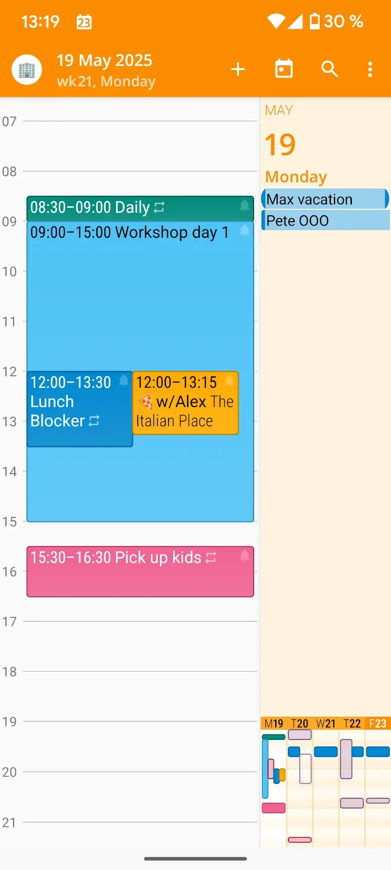 aCalendar+ is a productivity application that functions as an enhanced calendar and event scheduler for Android. It is designed for users who require more detailed planning and visualization than the standard system calendar offers. The app integrates with the native Android calendar database, allowing for automatic synchronization of events.