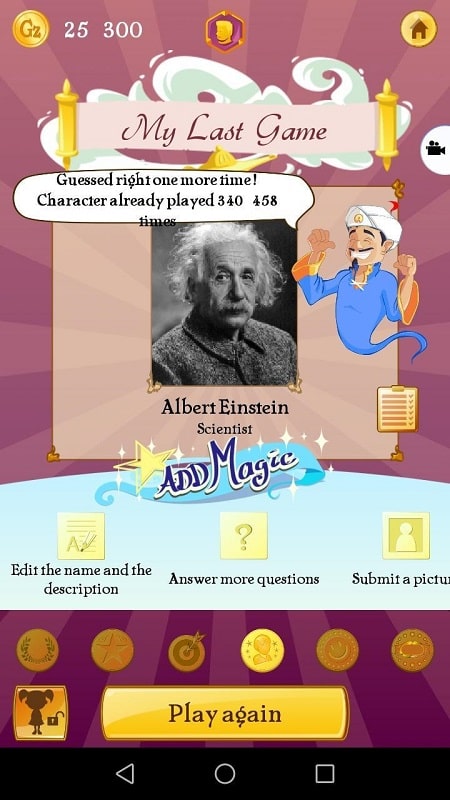 Akinator VIP Mod is a paid entertainment app where an AI genie attempts to guess a character, real or fictional, based on a series of user answers. This mod version modifies the in-game economy.