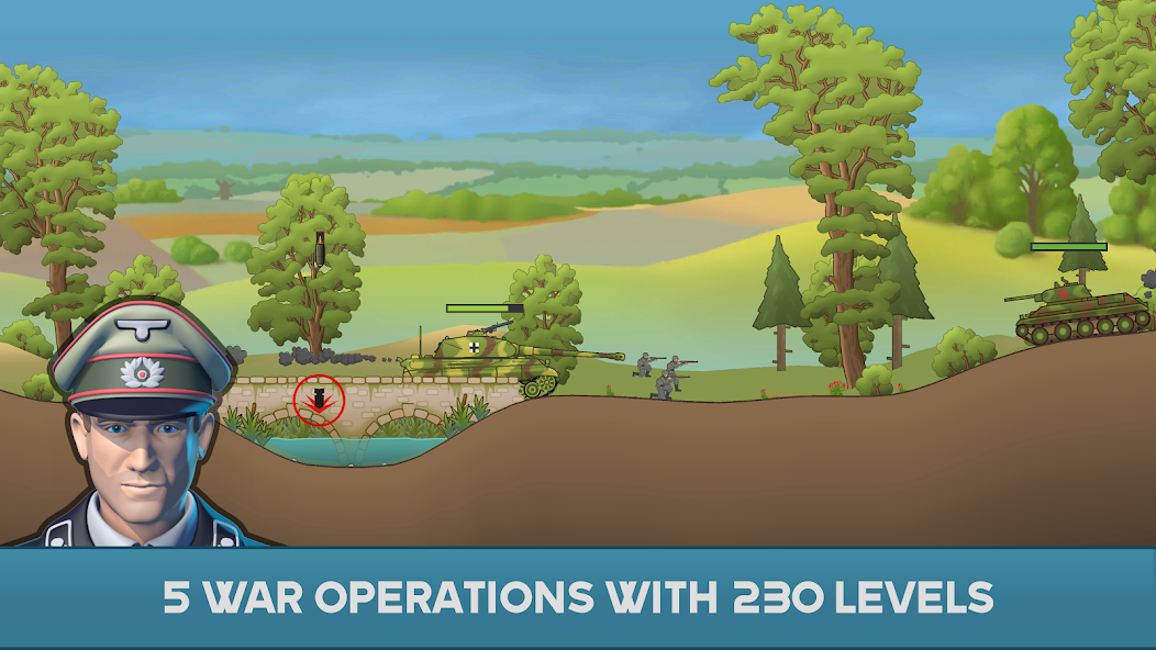 Armored Heroes - the game offers a unique opportunity to immerse yourself in the world of tank battles during World War II. Game Features: Embark on an epic adventure through 200 campaign levels. Command 19 authentic tanks from the World War II era. Complete 50 levels in the first campaign and liberate Paris. Lead Soviet tanks through the harsh Russian winter. Overcome desert obstacles with the Afrika Korps. Execute Operation Barbarossa using the latest German tanks. Upgrade your fighting machines to gain the upper hand over enemies. Select ammunition that suits the objectives of your mission. Customize your tanks with unique paint jobs and camouflage. Achieve greatness and earn medals for outstanding accomplishments.
