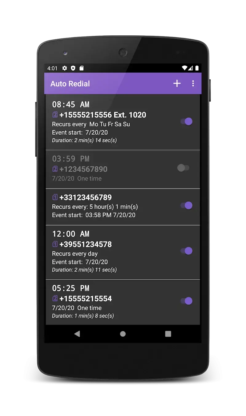 Auto Redial Mod is a utility application designed for automated telephony tasks. It functions as a programmable dialer, allowing users to schedule and execute repeated calls to specified numbers, including landline, mobile, SIP, and IP numbers. The app is intended for users requiring automated call testing, reminder systems, or persistent connection attempts without manual intervention. It operates within the system telephony framework and supports dual-SIM devices.
