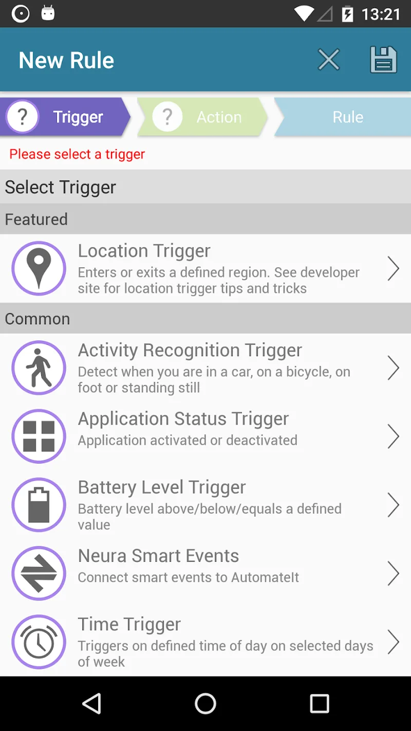 To access the premium features, simply launch AutomateIt Mod after installation. The main rule creation screen will show the full library of triggers and actions, including those marked as 'Pro' in the official version. No additional activation steps or mod menus are required.