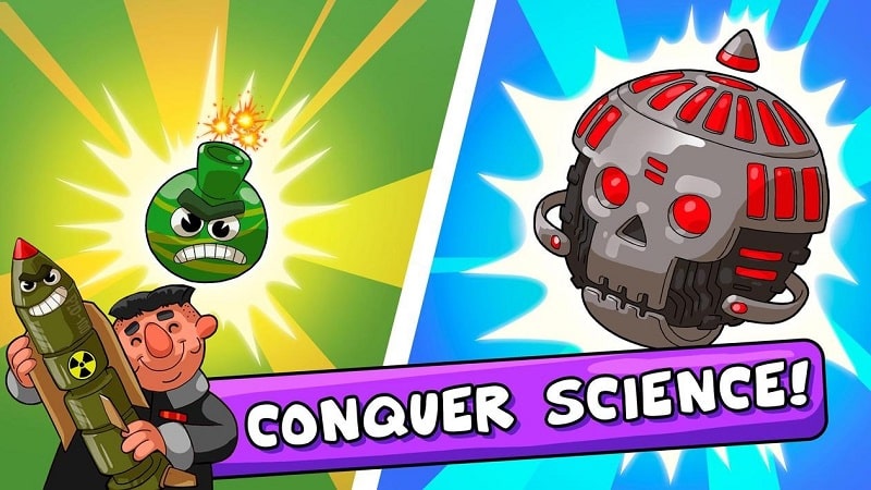 BIG BANG Evolution Mod is an incremental arcade game focused on weapon evolution through merging. The core loop involves tapping and fusing bombs to generate currency, unlock new eras, and progress through a tech tree. The target audience is players seeking a low-engagement idle progression system with a thematic wrapper of explosive development.