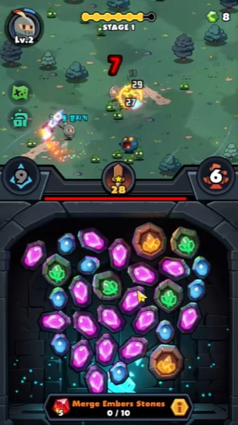 Bingbing Knights MOD APK will bring players a new form of fighting unlike other monster fighting and killing games. Because while the battle is going on, players can still change the warrior’s moves by merging items. Players just need to combine stones of the same color together. When combining two level one stones together, the player will receive a level two stone, and its shape will also be changed. At a certain level, you will receive a random move. Thus, in battles, the more magic stones you combine together, the more moves your warrior will be able to use to attack monsters.