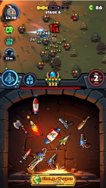 In a battle, players will have to face many stages. After killing all the monsters on a map, you will quickly move to a new map. The maps will correspond to a stage, the difficulty of the battle stages will be increasingly difficult. You can be taken to a place covered in white snow, a hot volcano or a forest. The shapes of the monsters will also be changed according to the theme of that map, their fighting ability will also increase gradually. Players need to merge many moves and powerful weapons to support their warriors. Download Bingbing Knights MOD APK fight and destroy monsters with moves and weapons created by the player.