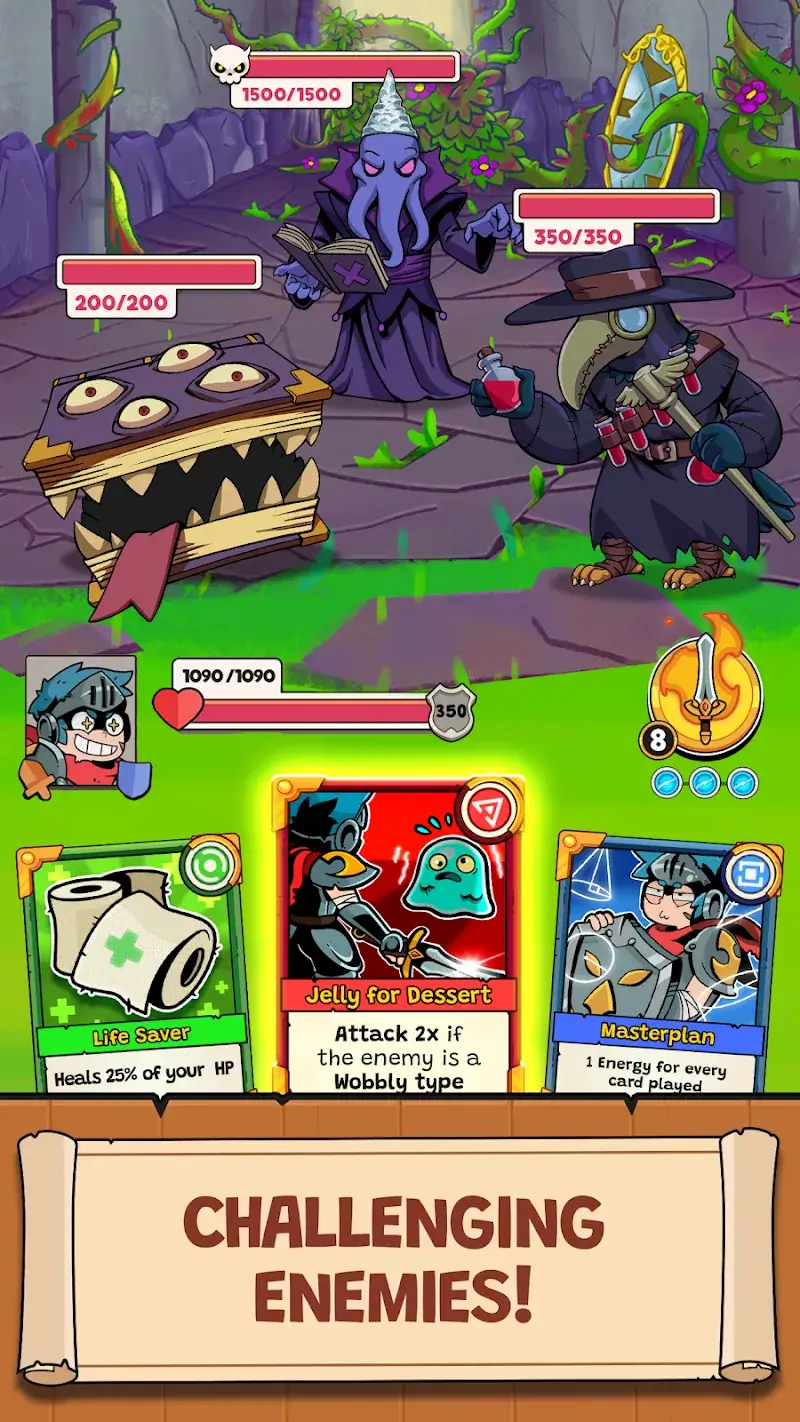 If you only focus on choosing the cards you like, then when you meet stronger opponents, you will be defeated immediately. You sometimes have to face many monsters at the same time, so destroying them as quickly as possible will increase your survival process. At the same time, the Card Guardians: Deck Building system always encourages players to create combos with cards of the same type. When three cards of the same color are activated in the same turn, you will be able to enjoy an additional extra effect. To be able to draw the desired number of cards, arranging the number of cards is also necessary.
