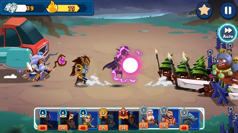 Control your army of heroes to fight bravely with monsters. The spirit of solidarity and the perfect combination of heroes will push the monsters. Before the matches, there will be help from the magic box. Mysterious chests will help you fight more easily against enemy attacks. And after each victory, you harvest monster rewards hidden in the abode. Violent monster bosses will appear to stop you after you destroy every 10 of their bases. Enemies will appear and attack in droves. So keep yourself calm enough to face them and win.