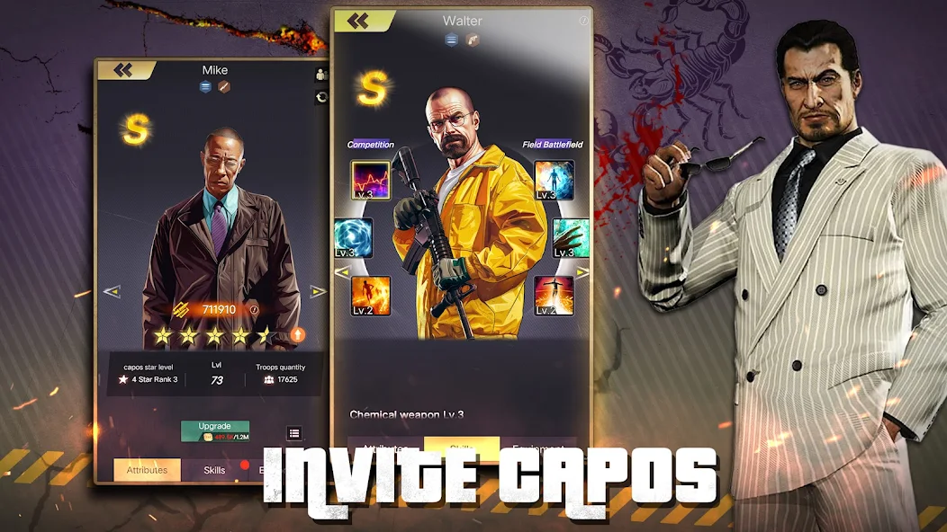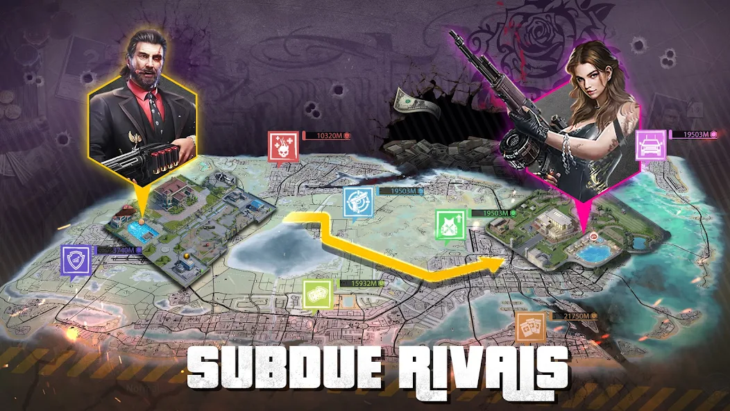 City of War: The Mafia is a game where every step can lead you to the heights of power or to death in a ruthless world of crime. This unique strategic game and life simulator allows you to create and develop your own criminal empire, starting from nothing and ending with control over an entire city. Game features: - Build new buildings, upgrade existing ones, and hire loyal subordinates to expand your influence and strengthen your position. - Plan your attacks and defense carefully, using resources wisely to defeat enemies and capture new territories. - Join forces with other players to create powerful alliances. - Test your skills in epic battles with players from around the world. - Immerse yourself in the captivating world of crime, where every plot twist can change everything. - Assemble a team of unique characters, each with their own abilities and backstory. - Regularly complete missions to receive rewards and advance the storyline. - Marvel at the high-quality graphics and detailed environment that make the Gangster Empire world even more captivating and realistic.