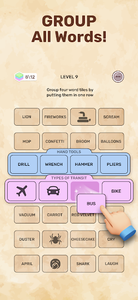 The modded version of Connect Word grants immediate access to all thematic word sets without requiring sequential completion or payment. Ad removal creates an uninterrupted puzzle-solving flow.