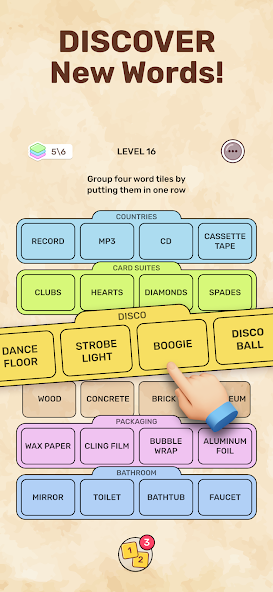 Connect Word: Association Game Mod is a vocabulary-based puzzle application where players connect words sharing a common theme from a provided list. It targets users seeking to test and expand their lexical knowledge through associative reasoning. The core loop involves identifying thematic links between words to clear levels, with progression gated by locked puzzle packs and interrupted by advertisements in the official release.