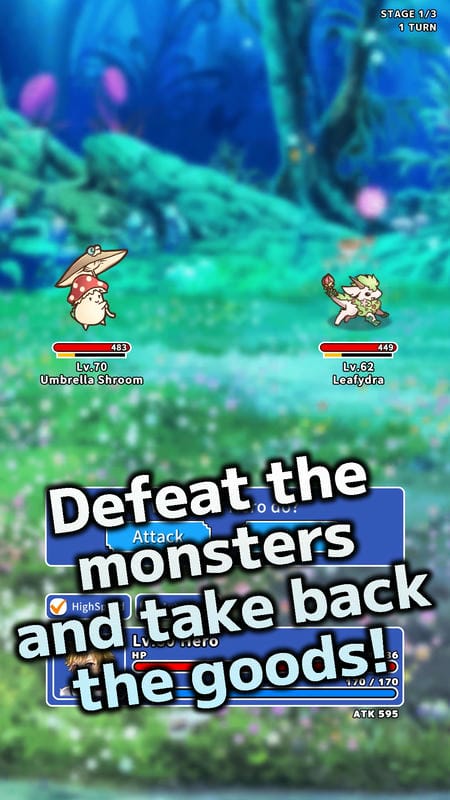 Monsters will often steal goods from your store, to avoid that you will need to defeat them to get your goods. When your store is small, lower level monsters will come to steal and every time the store in Convenience Hero APK mod is expanded, stronger monsters will come. They can take the form of plants like Umbrella Shroom which is a mushroom or animals like Leafydra which is a small unicorn. Don’t let their cute appearance fool you, once they enter the battle they can attack you with high attack power attacks. In addition, when you defeat monsters, you can also receive equipment such as weapons and armor.