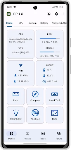 Besides the above features, CPU X also comes with a lot of useful tools to support users in many different cases. These include ad-blocking, linear measurement, compass, emergency signals, and more. Most of these little features will be extremely useful in specific cases. Overall, the appearance of this application will make your mobile device more versatile and useful than ever.