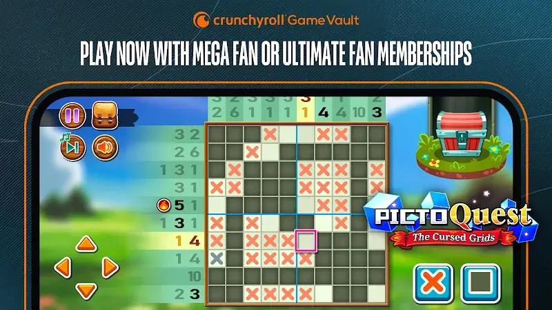 Crunchyroll: PictoQuest Mod is a nonogram-style puzzle game that merges pixel art with anime aesthetics. Players solve logic puzzles to reveal images, progressing through themed levels. The mod APK targets players who want to bypass the game's monetization and access restrictions.