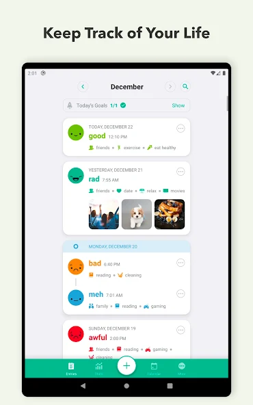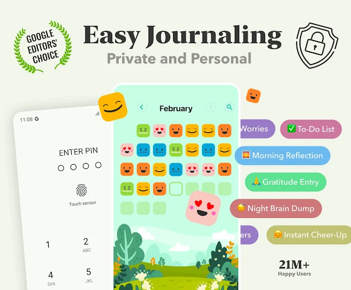 Daylio Mod requiere Android 8.0 o superior. La instalación ocupa aproximadamente 25 MB de almacenamiento, más espacio adicional para los datos del diario. No se requiere acceso root.