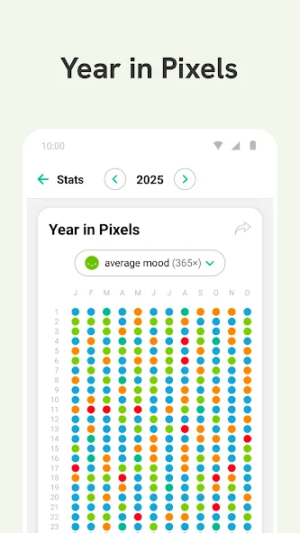 Para acceder a las funciones premium de Daylio Mod, simplemente abre la aplicación después de la instalación. La interfaz mostrará automáticamente todas las opciones premium, como los temas de color y las opciones de exportación, sin requerir ninguna acción adicional del usuario. No hay un menú Mod separado.