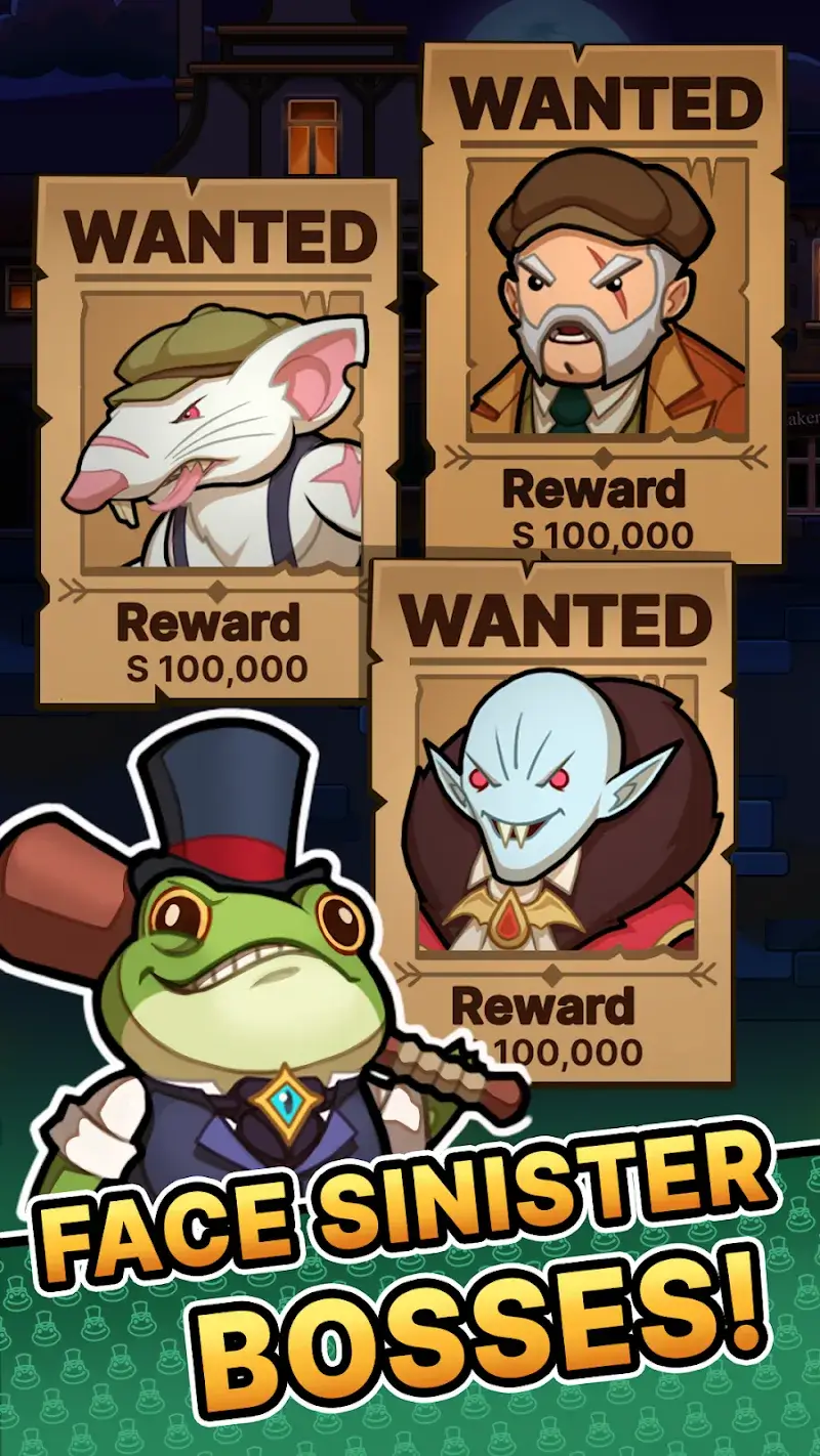 Players will play the role of a famous detective and explore the most difficult cases. But do you know what strange thing happens in DetecToad: Detective Idle RPG? That is, you will be turned into a toad. This is one of the most difficult things that will cause your crime-solving journey to be interrupted visibly. This will limit the player in all physical aspects. However, poor physical condition does not wear down your intelligence and sharp reasoning ability. Thanks to that, you can still participate in many different cases and collect evidence about the plans of those who turned you into this form.