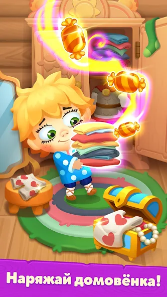 I am Kuzma, a hereditary house spirit and guardian of the hearth. I invite you to the world of exciting puzzles, where we will decorate my hut together and help fairy-tale characters restore their worlds. We will visit Baba Yaga, pay a visit to Koschei the Immortal, and wander through the dense forest with the Leshy. On dynamic "match-3" levels, we will embark on real adventures: smashing dishes for good luck, dispersing storm clouds, and collecting sweet candy roosters - fun is guaranteed. 5 reasons to fall in love with our game: I am the cutest and most loyal house spirit, Kuzma. I will greet you at the doorstep and accompany you throughout the game. Fantastically dynamic "match-3" levels with unique mechanics and no intrusive ads. Amazing characters and locations from beloved fairy tales and cartoons await you. The game is created with heart and love, embracing the warmth of Russian culture. Possibility to play anywhere and anytime - no internet required.