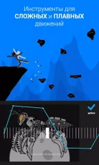 Draw Cartoons 2 - the perfect application for those who have always dreamed of making an animated film. The program is easy to learn, even small children will be able to remove their small masterpiece. At the first start the user immediately gets to the main screen, where the main controls are located. It is not difficult to master all the functionality of a virtual studio, especially if you pass the training. To create a video sequence, you can use existing templates or create your own object. In any case, it will consist of several nodes and points of rotation. First, you need to create several key frames by clicking the blue arrow at the bottom of the screen. After this, it is necessary to begin to rotate the nodes. Also here you can mirror the image, take pictures from the gallery, increase or decrease the brightness and transparency. Of course, there are not so many settings, but for shooting an amateur film is enough with a vengeance. The result can be laid out on Youtube. Drawing Cartoons 2 - an excellent solution for young animators and those who do not want to master professional programs.