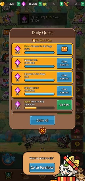 Daily quests will also provide players with resources to upgrade their heroes. Quests will appear randomly for you to complete, and the rewards will be commensurate with the difficulty of the quest. Some quests players can complete include Proceed to the Stage, Bonus Monster Kills, Sell Resources, and Monster Kills. Upon completion, you will receive 50 to 300 gems, which can be used to upgrade and unlock new skills for your hero. Download Druid Rising MOD APK to fight monsters and expand the forest, transforming it into a paradise of beautiful flowers.