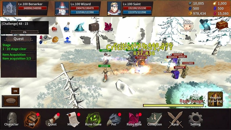 You will join the team of people trapped in the dungeon fighting to find the way out. However, where you fall into are endless dungeons, and many dangers are lurking there. So it would be best if you discovered the strength of your companions to be able to combine combat. The gladiators will go to the front of the squad and help you stop the monsters with great strength. The assassin squad will have strong attack power and help you destroy monsters. Besides, supporting heroes will help you heal if injured or increase strength. Find talented heroes and combine them to fight in Dungeon of Infinity MOD APK.