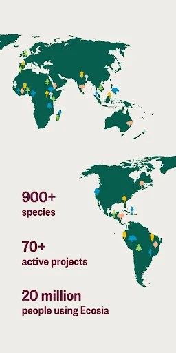 Ecosia Trees & Privacy Mod mod requires Android 10 or higher. The installation requires approximately 250 MB of free storage. Root access is not required.