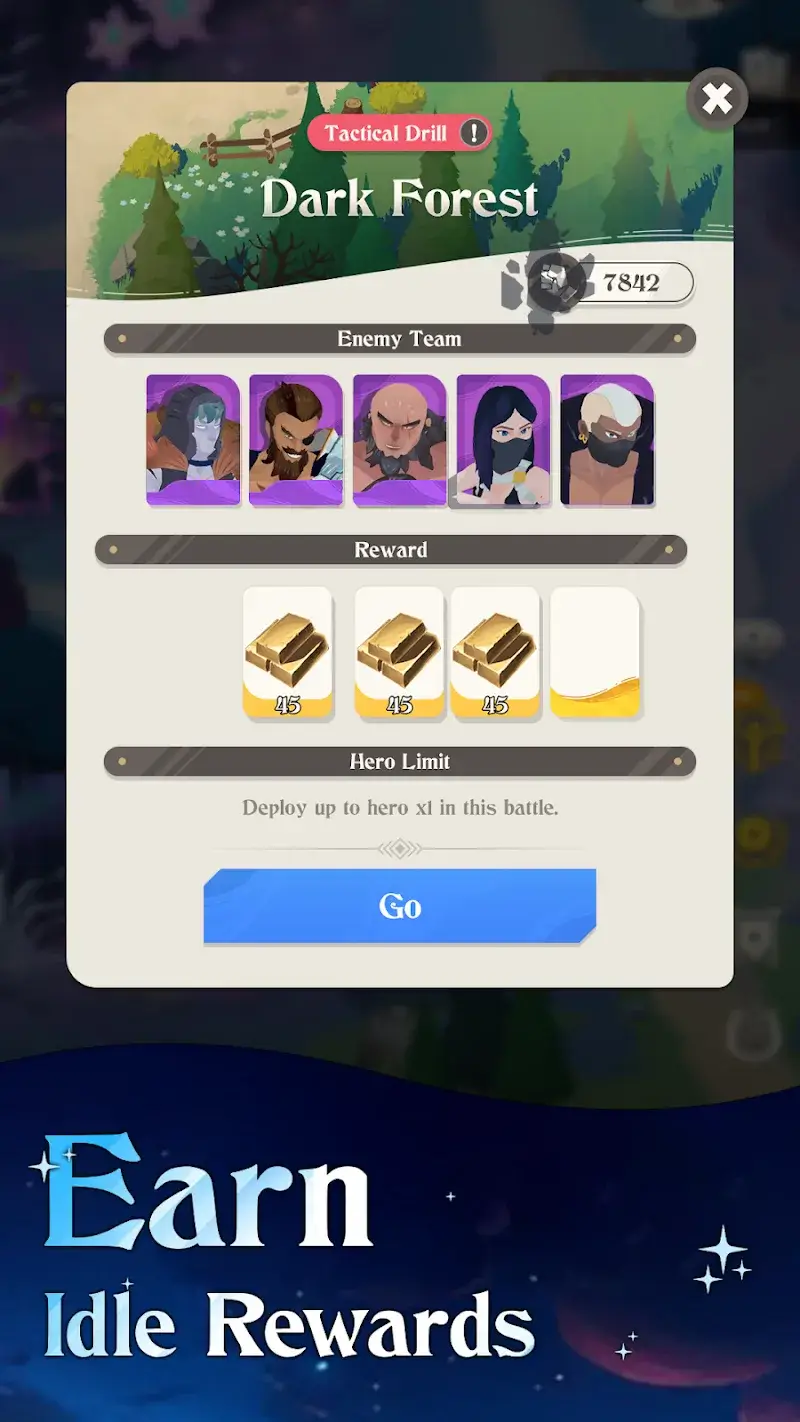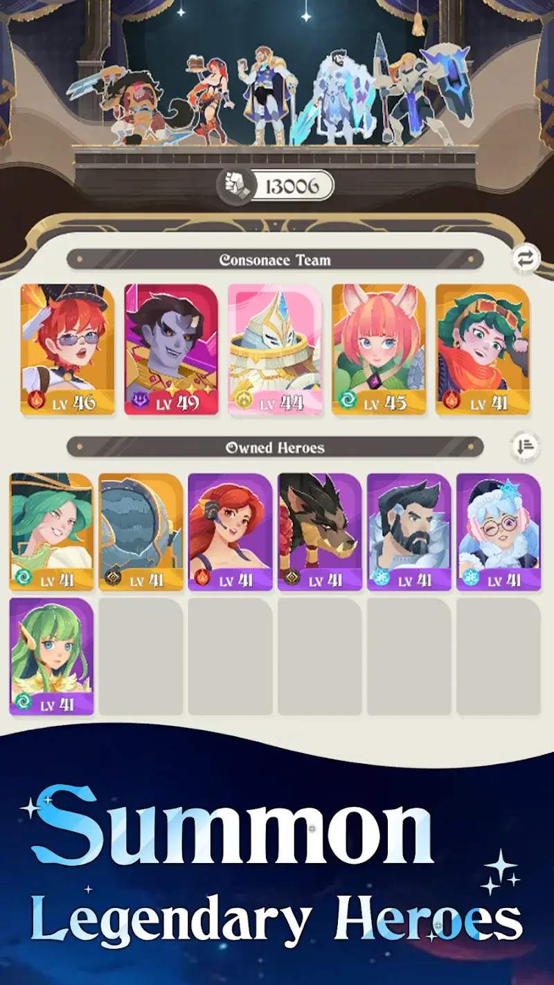 Elysia: The Astral Fall Mod is a real-time squad-based role-playing game where players assemble a team of five heroes to defend the universe of Solaria from an invading force called The Void. The core loop involves exploring six distinct regions, battling continuous waves of monsters, and managing hero elements and combat roles. The game is designed for players who enjoy automated combat with a focus on team composition and resource management for progression.