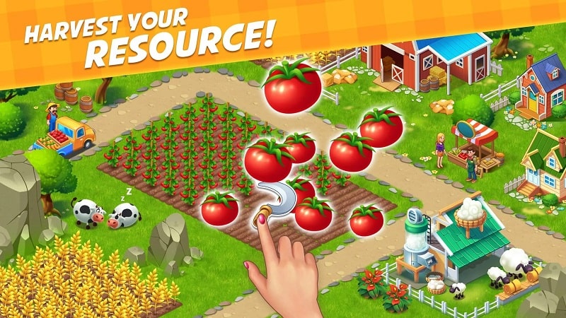 Farm City: Farming & Building Mod is a casual farming simulation game where players cultivate crops, raise livestock, and expand a rural homestead. The target audience is users seeking a low-pressure management game with incremental progression. It operates within the farm sim genre, focusing on resource collection and area decoration.