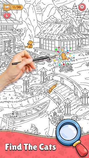 Cats are often hidden in small details or blend in with the surrounding scenery, requiring players to focus and pay close attention. You can use the zoom function to see each small detail in the picture more clearly. In addition, if you have difficulty finding them, the game provides hints to help players overcome difficult challenges.