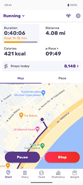 - Custom goal setting and detailed pace statistics are enabled.
