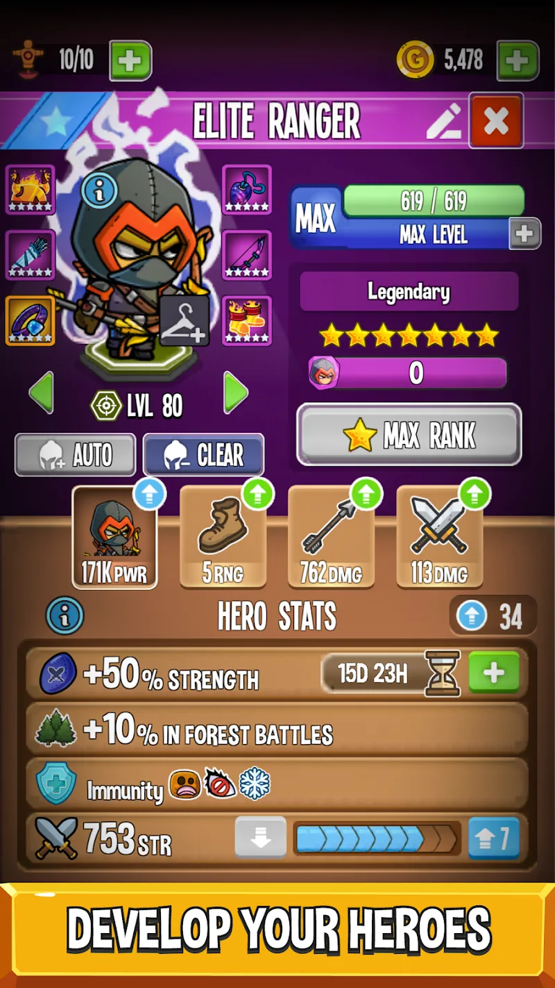 Massive Hero Roster: Coming to this game, you will own a huge list of warriors. Warriors with diverse strengths and diverse fighting skills will bring you attractive choices. Help you find warriors that suit your strategy and gameplay.