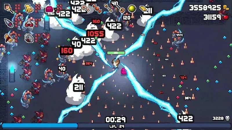 Friend of a Slime: Survivors offers fast-paced battles lasting just 10 minutes. Players simply need to defeat enemies, collect coins and fruit to increase their strength, unlock new weapons, and purchase powerful artifacts.