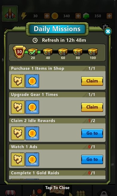 Galaxy Wing Zero MOD APK will require players to complete many different missions, which will be refreshed daily for players to conquer. You will receive some rewards for completing them. The missions are also quite simple, for example, Watch 1 Ads, Complete 1 Gold Raids, Open 1 Chest Draws, Complete 1 Stage Challenges, Patrol Rey. In these simple missions, you will receive aircraft fusion fragments and gold. In addition, when shooting down a target in battle, you will receive some gold and EXP points to level up. This will help change the appearance of your fighter plane, making it bigger and having more powerful weapons so you can shoot down any target. Download Galaxy Wing Zero MOD APK and control your own fighter plane to shoot down the enemies attacking the skies.