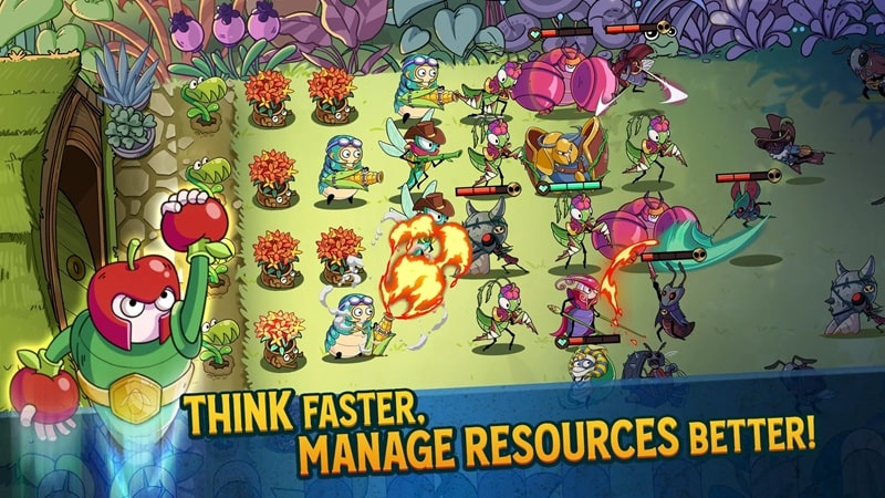 Fighting for life at Garden Guardians TD MOD APK is not simple when the results of the challenges involve many creatures living together in the garden. In contrast to the evil nature of the evil insects, you meet good and brave insect warriors, listening to your commands, lining up strategically, forming a defensive formation to prevent the enemy from invading. You need to overcome chaotic moments, the fear of being destroyed, lead the army to fight persistently, perform power upgrades, arrange the formation before starting the challenge to help you have the most comfortable spirit. Lead the defense team to fight in the garden, protecting it from the risk of being destroyed by the enemy.