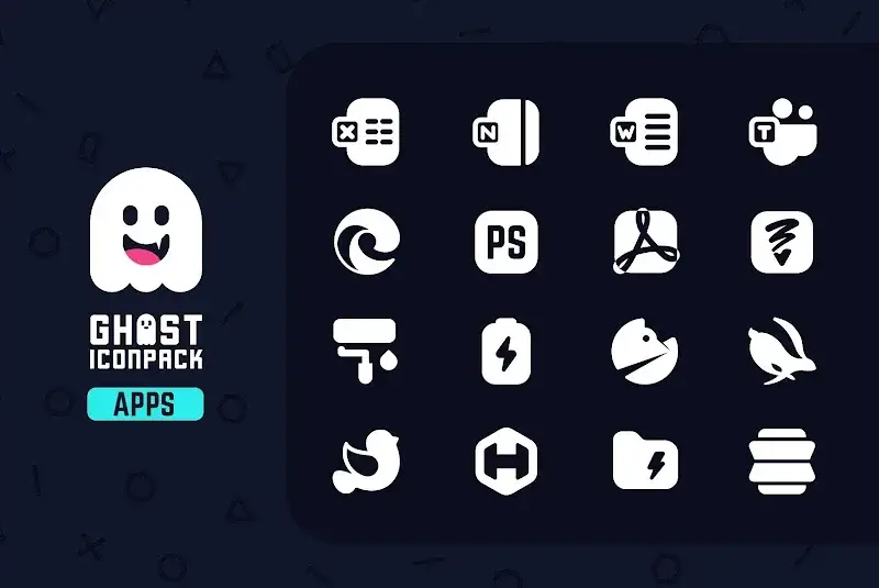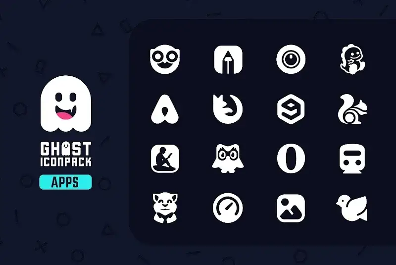 Ghost IconPack Mod is a monochrome icon pack for Android launchers that replaces system and app icons with a cohesive, minimalist black-and-white design. It targets users who want a uniform, dark aesthetic across their home screen and app drawer without requiring root access.