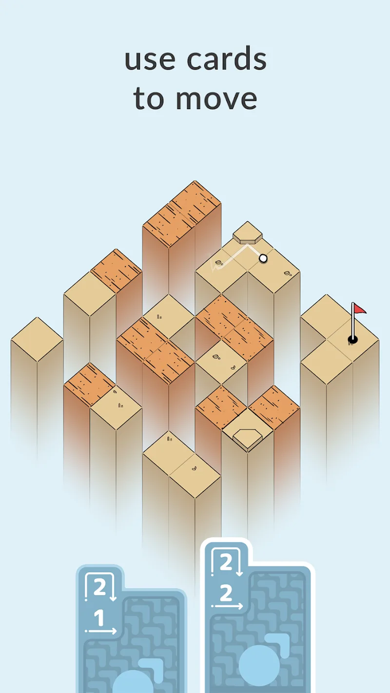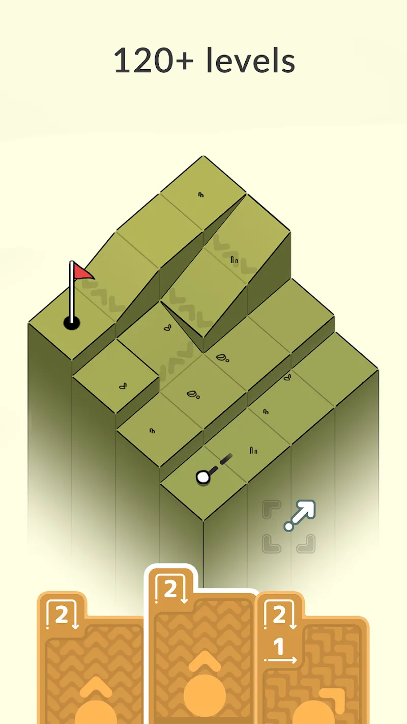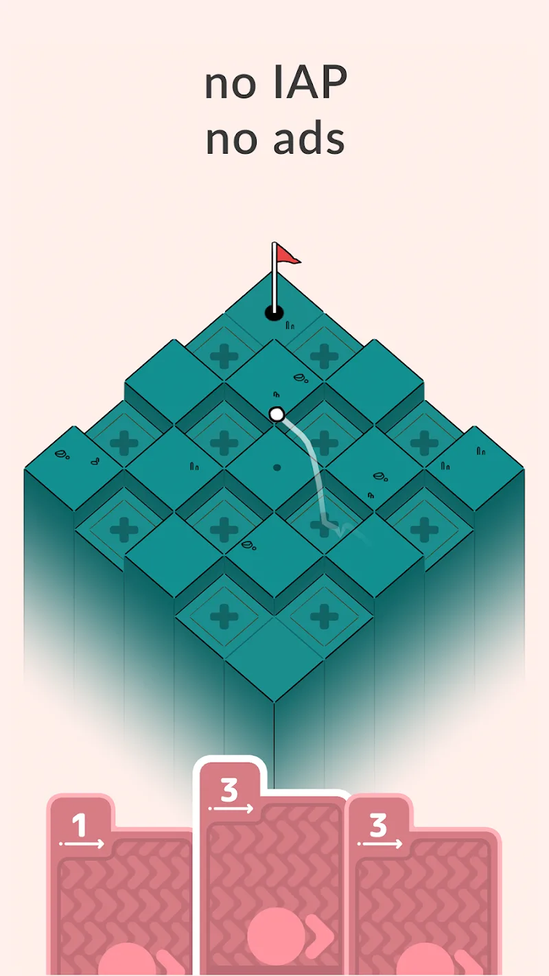 Golf Peaks Mod is a turn-based puzzle game that reinterprets golf as a card-based logic problem. Players are presented with a grid-based landscape and a hand of movement cards. The objective is to combine these cards in the correct sequence to guide a ball into the hole, navigating varying terrain heights and obstacles. It is designed for players who enjoy spatial reasoning and minimalist puzzle mechanics without real-time pressure.