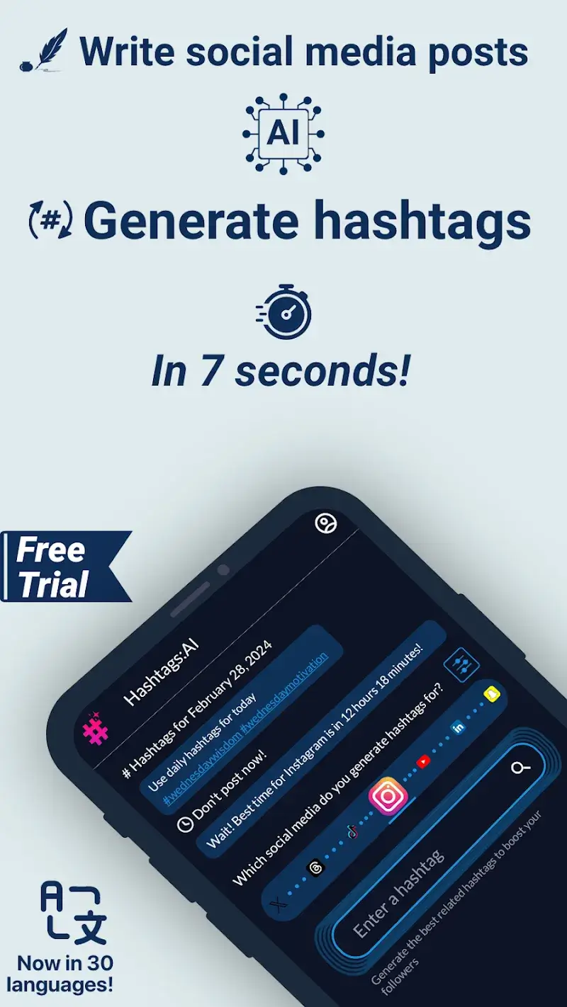 Hashtags AI Mod is a utility application designed for social media managers, content creators, and marketers. It uses artificial intelligence to generate, analyze, and organize hashtags for platforms like Instagram, TikTok, and Twitter. The app targets users seeking to optimize post visibility and engagement through strategic hashtag use.