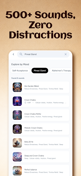 Healing Sounds Mod is a sound therapy application designed for users seeking relaxation, meditation, or sleep aid through curated audio libraries. It functions as a digital collection of ambient melodies and nature sounds, categorized by therapeutic purpose. The app targets individuals looking for a non-interactive, audio-focused wellness tool without complex controls.