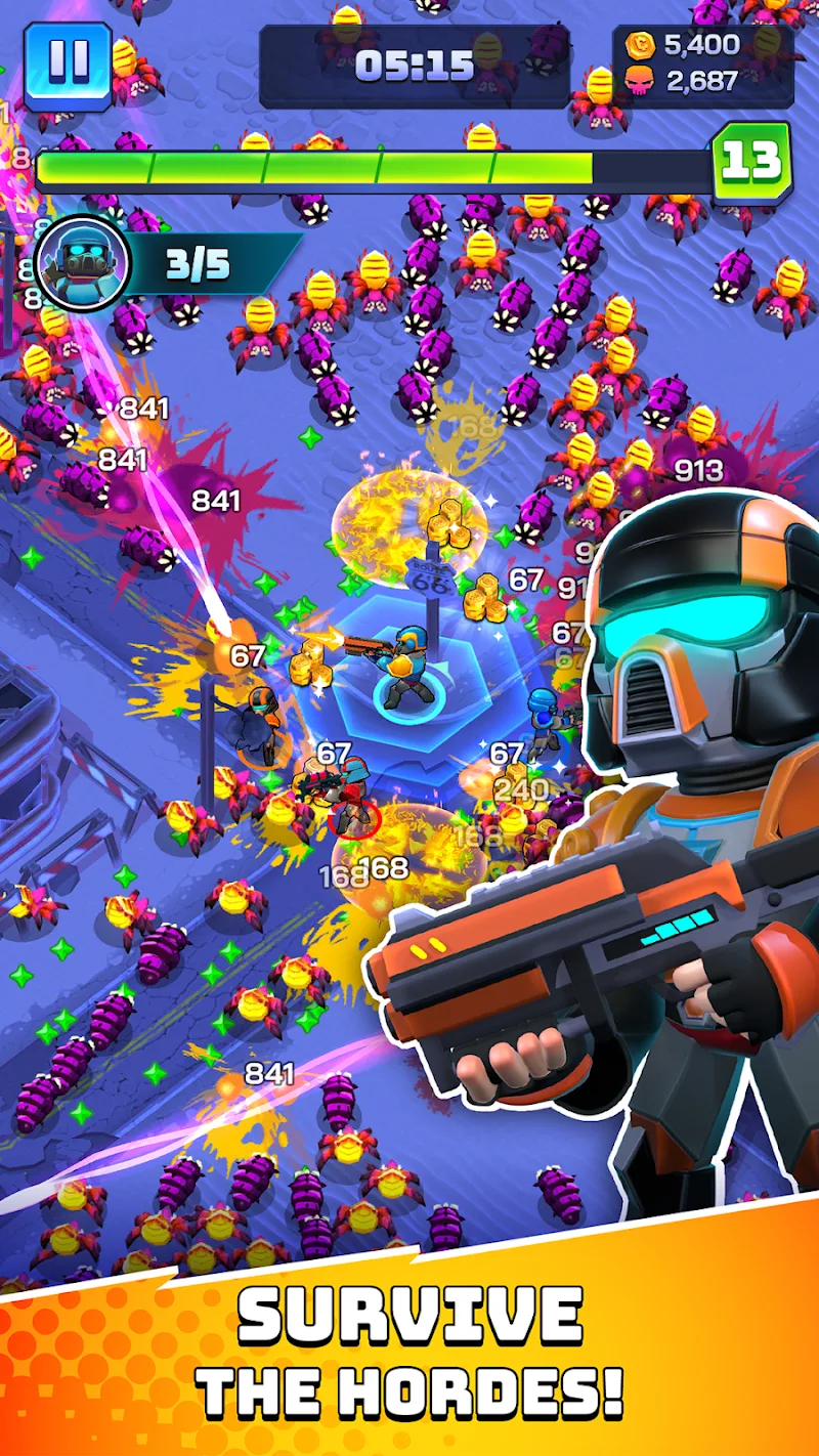 Players take on the role of a special forces commander, leading their team to fight against a multitude of enemies and giant bosses. The sole objective is to survive the frenzied attacks, protect humanity, and successfully escape.