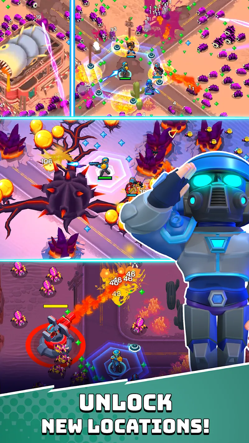 Hellfighters is a mobile survival action game in the roguelike shooter style, placing players in a post-apocalyptic science fiction setting where Earth is invaded by ferocious alien insects.