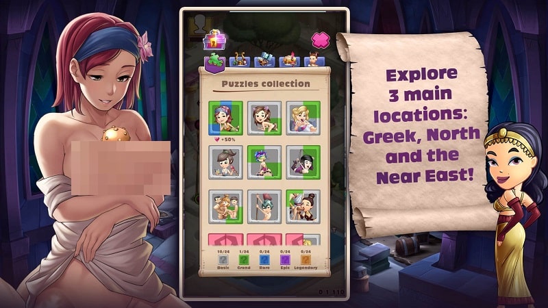 House of Sin will bring you more than 50 different stories of all genres. You will be participating in captivating dialogues with the goddesses. Help them carry out essential missions to find lost treasures. Help those who are in difficult circumstances to receive many valuable rewards. More specifically, after each completion of a story chapter, you get a piece of the puzzle. These pieces, when thoroughly combined, will form a perfect picture. All depict the beauty of fairies and goddesses of love and beauty. Make your collection fuller.