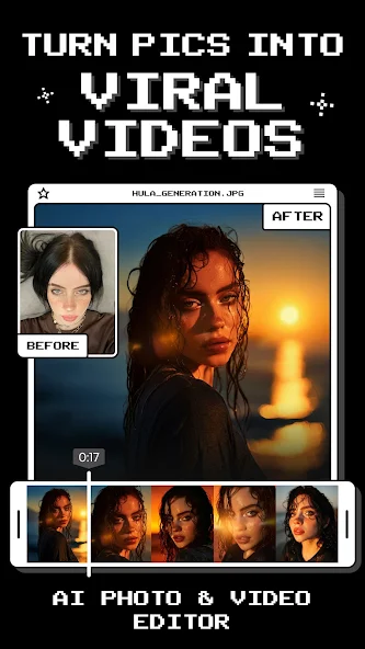 Hula AI Mod is a specialized video generation application that uses machine learning to animate user-provided selfies into stylized video clips. It targets social media content creators, particularly those on TikTok and Instagram, who require rapid, template-driven video production without manual editing. The app functions by analyzing a single photo input and applying pre-trained animation models to create short-form video content.