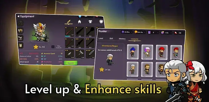 Hunter’s Legend Idle RPG essentially is an idle RPG. It has a simple but attractive gameplay mechanism. The game is designed to bring a comfortable experience to the player. The gameplay is particularly easy to approach by creating a sense of satisfaction through valuable rewards after each battle. Automatic combat and the opportunity to mostly upgrade characters are ideal for those who love the idle RPG genre. They achieve their desire to conquer challenges.
