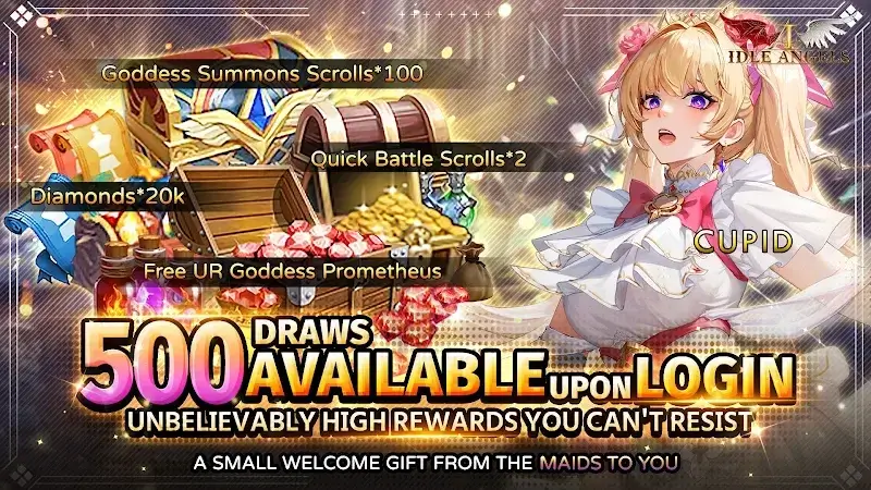 Idle Angels Mod is a vertical-screen idle role-playing game where players collect and upgrade angelic champions to form a battle party. The core loop involves automated combat, strategic team composition, and progression through a campaign map. This mod APK is for players seeking to bypass the game's progression gates and resource constraints.
