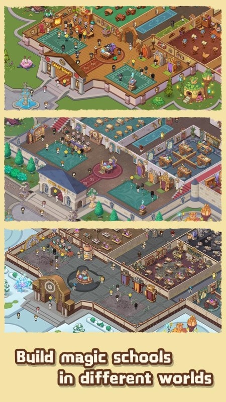 Experience building your magic school at Idle Magic School! This is a beautiful strategy simulation game. Coming to Idle Magic School, players will become talented managers of this strange school. However, there is a lot of work set out to challenge you. But it will make you feel great about participating. The first thing players have to do is build. Next is the development of enrollment, training much magic. Many different activities will compound the interest you find. Idle Magic School promises to bring many particular tasks to satisfy your entertainment.