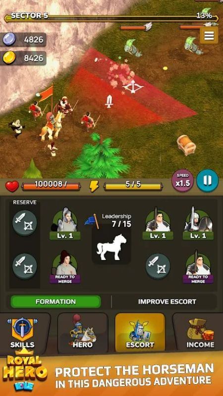 Idle Royal Hero Mod is a tower defense idle RPG where players command and merge hero units to defend against waves of monsters. The game targets players who enjoy incremental progression systems and strategic unit placement without requiring constant active play. The core loop involves collecting resources offline, merging units to increase their power, and deploying them in arena-style battles against increasingly difficult bosses.
