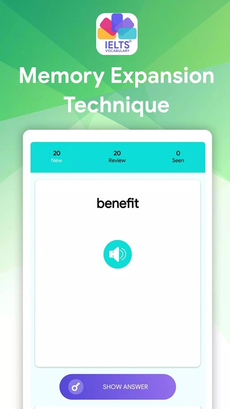 IELTS Vocabulary Flashcards MOD APK has used the spaced repetition algorithm, which is a scientific learning method that helps you quickly memorize vocabulary in a long-term way. When using this algorithm, the system will rearrange the time to review appropriate vocabulary according to the increasing time intervals between the next reviews of previously learned documents. Therefore, the vocabulary will be recalled as soon as you are about to forget, helping you quickly consolidate the knowledge you have learned. This feature is very suitable for the process of acquiring vocabulary knowledge in the journey to conquer a second language. This will be a great assistant for all IELTS listening exercises, IELTS reading practice, IELTS writing and IELTS speaking.