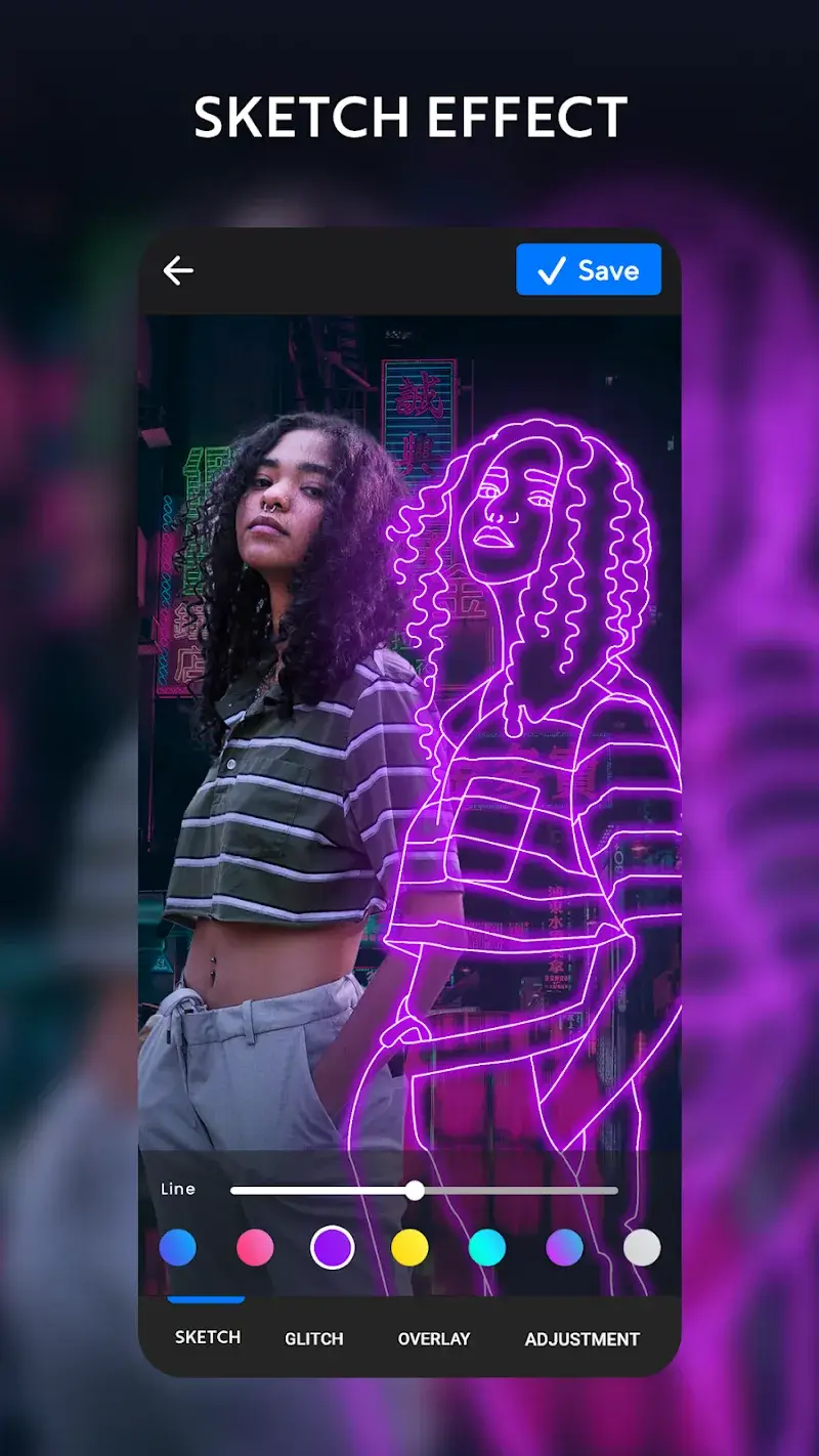 - All premium filters and effects are unlocked, including gradient neon filters, sketch line art, and glitch effects.