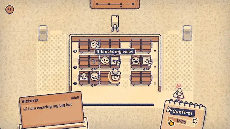 Is This Seat Taken Mod? es un juego de puzles de lógica desarrollado por Poti Poti Studio. El jugador asume el rol de un gestor de asientos, organizando a una variedad de personajes con personalidades únicas en configuraciones específicas según diagramas de área. El núcleo del juego gira en torno a la deducción lógica y la colocación estratégica para cumplir con los requisitos de cada escenario narrativo. Está diseñado para un público que busca una experiencia de puzles relajante y sin presión, con mecánicas táctiles optimizadas para móviles, incluyendo zoom con gestos de pellizco.