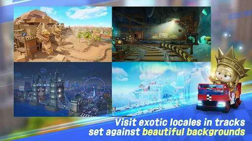 Besides, the drift mechanism is also an important factor to help you gain an advantage in the corners. Use drift accurately to show off your superior driving skills. After each race, players will have the opportunity to receive more karts, characters, skins, and more. Believe me, each race in the game will be unique and you will always feel interesting when you experience it.