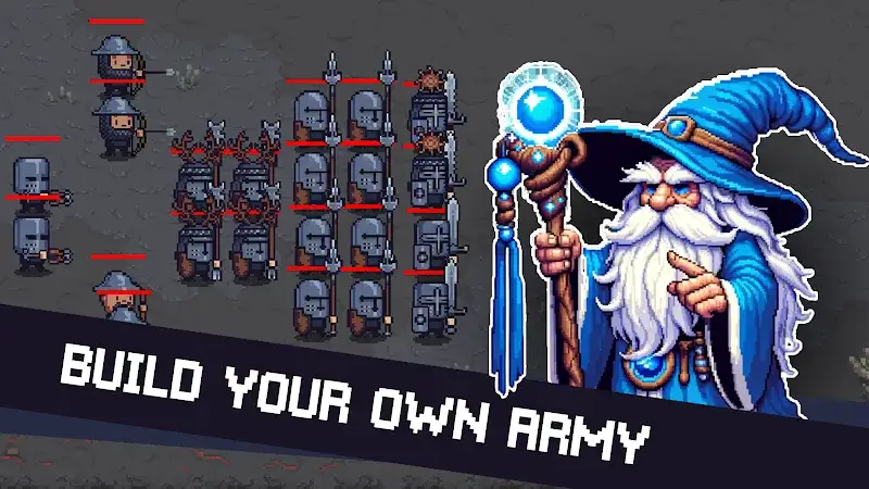 Little Army Manager Mod is a tactical army-building game set in a medieval fantasy world. The player acts as a commander, assembling and deploying units from a roster of over 50 types to defend against enemy waves and bosses. The core loop involves resource management, unit selection, and battlefield positioning. This places it within the real-time strategy subgenre, focused on defensive scenarios.